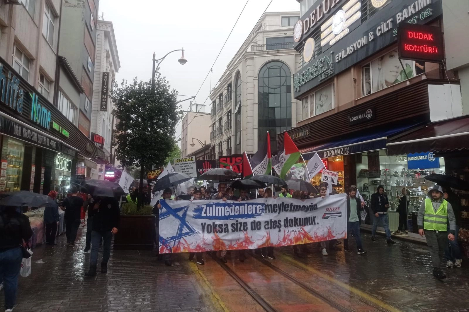 Gazze ile Dayanışma Platformunun organize ettiği etkinlikte, Orhangazi Parkı'nda toplanan sivil toplum kuruluşları ve vatandaşlar, 15 Temmuz Demokrasi Meydanı'na kadar yürüdü.