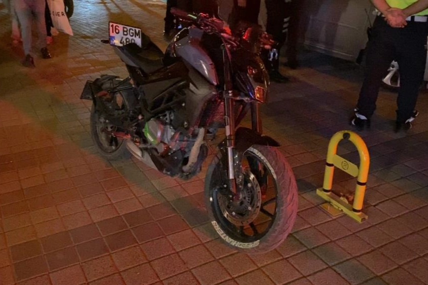 Dur ihtarına uymayan sürücü hızla kaçmaya başladı. Kovalamaca sırasında motosiklet sürücüsü park halindeki 16 ADJ 594 plakalı otomobile de çarptı.