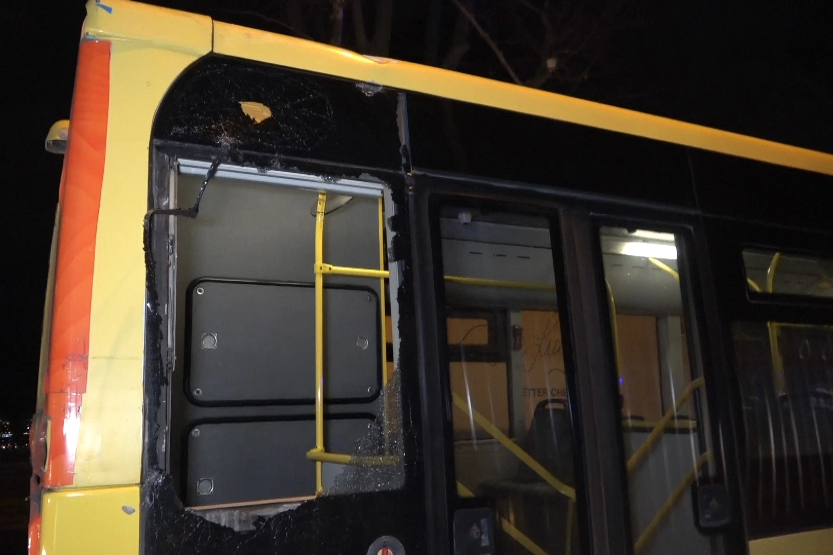 Otobüsün arka camı patlarken, yaralanan 2 yolcu ambulanslarla Çekirge Devlet Hastanesi'ne kaldırıldı.
