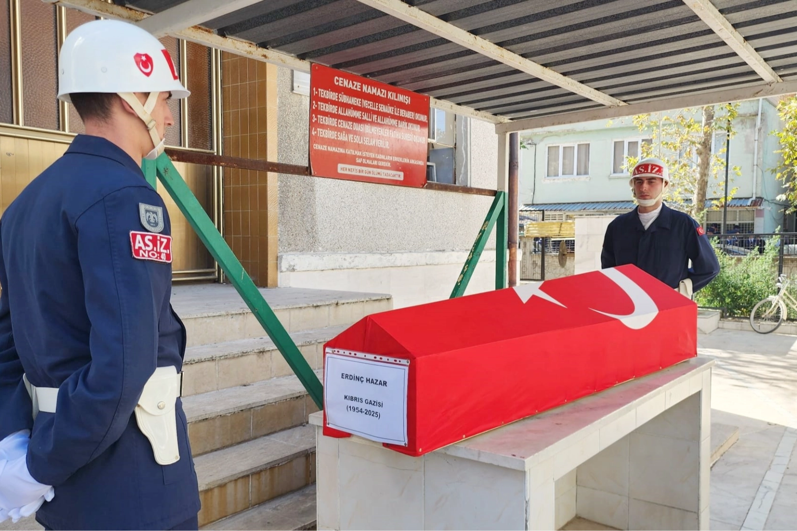 Hazar, kılınan cenaze namazı sonrası askeri tören ve dualarla Adile Mezarlığı'na defnedildi. Kıbrıs Gazi Erdinç Hazar'ı silah arkadaşları da asker selamıyla uğurladı.