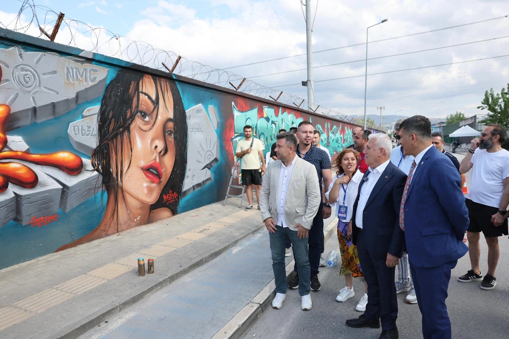 Park ve Bahçeler Dairesi Başkanlığı Kent Estetiği Şube Müdürlüğü tarafından hazırlanan şenlikte, duvarlar dev bir tuvale dönüşerek izleyenlere görsel şölen yaşattı.