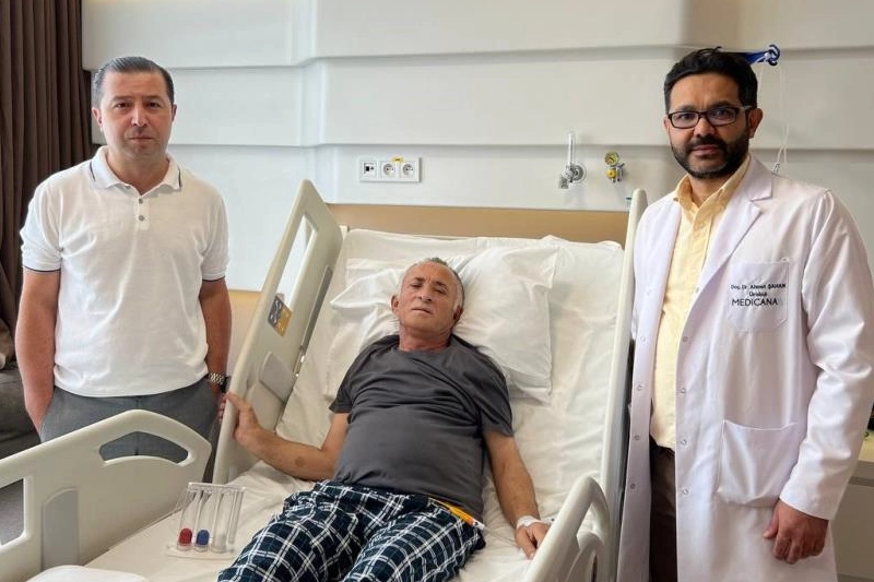 Üroloji Uzmanı Doç. Dr. Ahmet Şahan, zorlu bir operasyonla hastayı kanserden ve diyalizden kurtardıklarını belirterek, “İsmail Bey 56 yaşında doğuştan tek böbrekli, sol böbreğinde de tamamen rastlantısal 15 santimetre bir kitle saptandı. Böbreğinin 3'te 1'lik kısmı çalışıyor ve böbrek değerleri sınırlarda. Dış merkezlerde böbreğinin tamamen alınmasının uygun olacağı düşünülmüş. Normalde diğer böbreği sağlam olsa biz de böbreğin alınmasını önerirdik. Ama tek böbreği olduğundan dolayı diyaliz ihtiyacından kurtarmak istedik. Hastamıza parsiyel nefrektomi yani böbrekte kanserli kısmı alarak geri kalan kısmının korunmasını amaçladık. Normal böbrek kitlelerinde genellikle 7 santimetre kadar kapalı yolla parsiyel yapıyoruz. Ancak bu kitle ileri evrede ve 15 santimetre. Damarlara bitişik ve toplayıcı sisteme yakın bir tümördü. Biz burada hastamızı diyalizden kurtarmak için parsiyel şansımızı denedik. Asılında çok zorlu bir kitleydi, ameliyatı da oldukça zorlu geçti, yaklaşık 4-5 saat sürdü. Kapalı yolla damarları bulduktan sonra kitlenin büyüklüğünden dolayı kapalı devam edemeyeceğimiz anladık. Açığa geçip kitlenin olduğu kısmı çıkartarak böbreği koruduk. Hastamız bugün üçüncü gününde, diyaliz ihtiyacı olmadan günlük ortalama 2 bin CC'ye kadar bir idrar çıkışı var. Böbrek değerleri biraz yükseldi ama şu an için beklediğimiz değer. Bunun ilerde daha da düzelmesini bekliyoruz” ifadelerini kullandı.