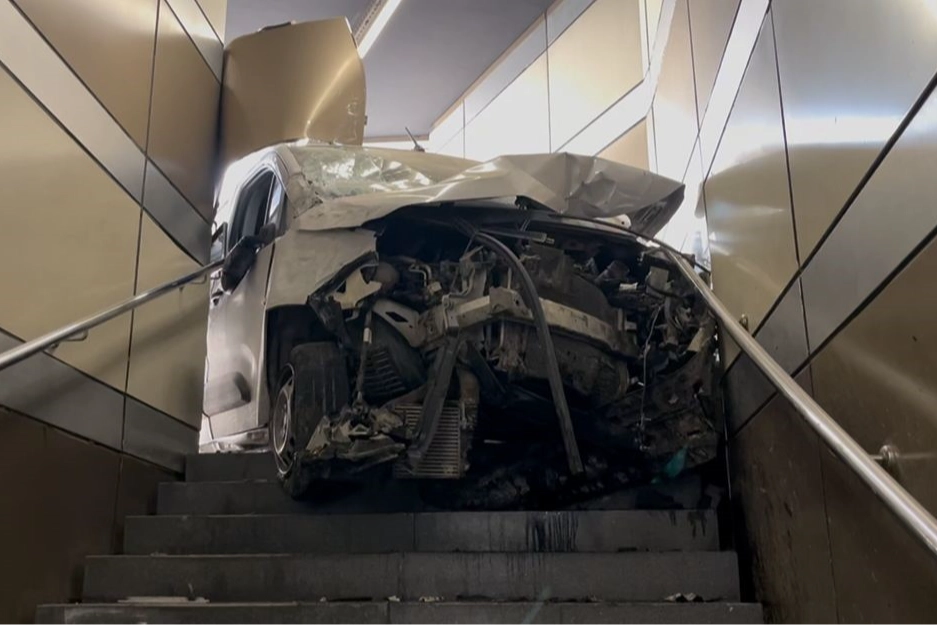 Direksiyon hakimiyetini kaybeden sürücü, kontrolden çıkan araçla önce aydınlatma direğine çarptı ardından Bağlarbaşı Metro İstasyonu'na girdi.