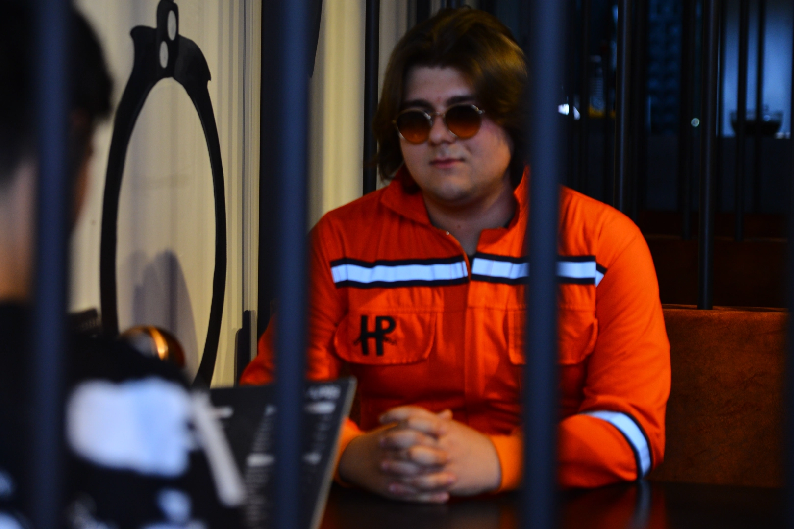 Garsonların, gardiyan kıyafeti ile servis yaptığı kafede, parmaklıklar ardındaki hücrelerde bekleyen müşteriler 'mahkum' kıyafetleri giyerek fotoğraf çektirebiliyor.