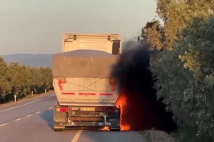 Yangını fark eden sürücü, kamyonu yol kenarına çekerek itfaiye ekiplerine yangını bildirdi.