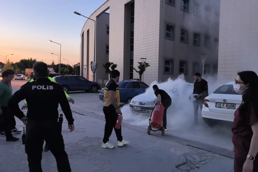 Yangın saat 20.30 sıralarında İnegöl Devlet Hastanesi Acil Servis otoparkında meydana geldi. Park halinde olan 16 AHS 595 plakalı otomobil, henüz bilinmeyen bir sebepten dolayı alev aldı. O sırada Acil Servis’te bulunan İnegöl Emniyet Müdürlüğü Trafik Büro Amirliği ekipleri ve ambulans görevlileri, yangın tüpleri ile araçtaki yangına müdahale ettiler. Ekipleri müdahalesi ile yangın büyümeden söndürüldü. Olay yerine gelen itfaiye ekipleri, söndürülen aracı kontrol etti. Aracın motor kısmında hasar meydana geldi. Yangını gören vatandaşlar ise kısa süreli panik yaşadı.