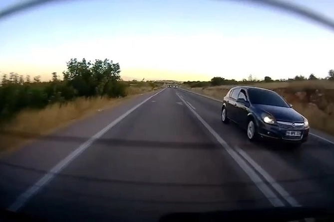 Tek şeritli yolda önündeki otomobili sollayan Opel marka otomobilin sürücüsü, hatalı sollama sonucu karşı yönden gelen motosikletle burun buruna geldi.
