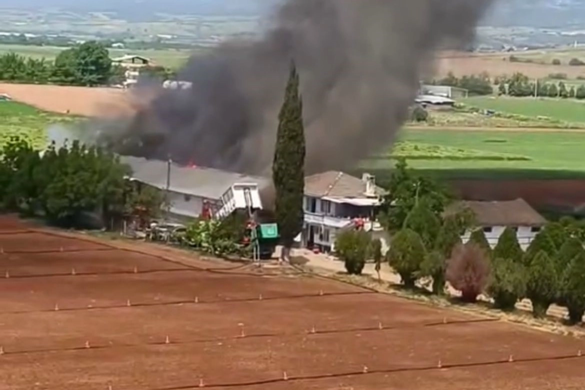 Edinilen bilgiye göre, ilçeye bağlı kırsal bir bölgede bulunan çiftlikte henüz bilinmeyen bir nedenle başlayan yangın, kısa sürede büyüyerek çevrede paniğe neden oldu.