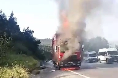 Olay, Gemlik ilçesi Dürdane rampasında meydana geldi. Sürücüsü ve plakası henüz öğrenilemeyen ve iddiaya göre canlı hayvan yüklü kamyondan, rampayı çıkarken bir anda dumanlar yükselmeye başladı. Sürücü, kamyonu emniyet şeridine aldı. Aracı bir anda alevler sardı. İhbar üzerine olay yerine jandarma, sağlık ve itfaiye ekipleri sevk edildi. Jandarma ekipleri yolda güvenlik önlemi alırken, itfaiye ekipleri yangına müdahale etti. Yangın, itfaiye ekiplerinin müdahalesiyle kontrol altına alınarak söndürülürken, araçta büyük çapta maddi hasar oluştu.