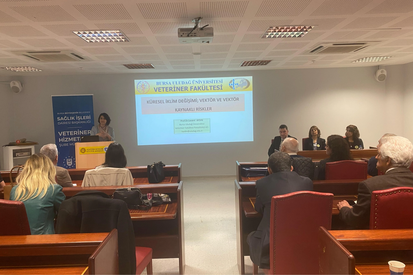 Bursa Büyükşehir Belediyesi Veteriner İşleri Dairesi Başkanlığı Veteriner Hizmetleri Şube Müdürlüğü’nün ev sahipliğinde, Bursa Dişhekimleri Odası, Bursa Eczacı Odası, Bursa Tabip Odası ve Bursa Veteriner Hekimler Odası iş birliği ile ‘İklim Krizi Kaynaklı Vektörel Hastalıklar Paneli’ gerçekleştirildi. Atatürk Kültür Merkezi Merinos Yerleşkesi’ndeki panele, Veteriner Hizmetleri Şube Müdürü Özlem Kartal, Bursa Veteriner Hekimler Odası Başkanı Melike Baysal, Bursa Uludağ Üniversitesi’nden Prof. Dr. Levent Aydın, Prof. Dr. Emel Yılmaz, akademik odaların temsilcileri ve vatandaşlar katıldı.