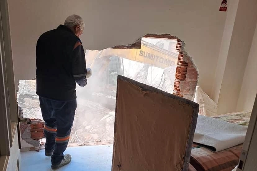 Edinilen bilgilere göre, temel kazısı yapılan inşaat alanında çalışan iş makinesi, bitişikte bulunan binanın duvarına zarar verdi.