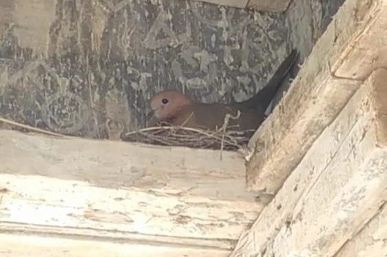 Bursa'nın Mudanya ilçesinde, inşaattaki kalıpları sökmek için gelen işçiler, yuva yapan kumruyu gördü.