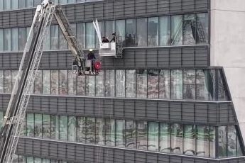 Rüzgârlı hava nedeniyle zaman zaman zorlanan ekipler, yaklaşık 2 saatlik müdahalenin ardından işçileri sepetli vinç yardımıyla güvenli şekilde aşağı indirdi.