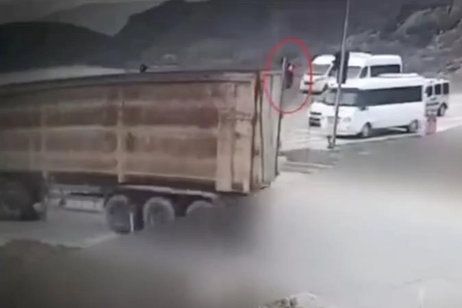 KIRMIZI IŞIKTA GEÇEN KAMYON KAMERALARA TAKILDI