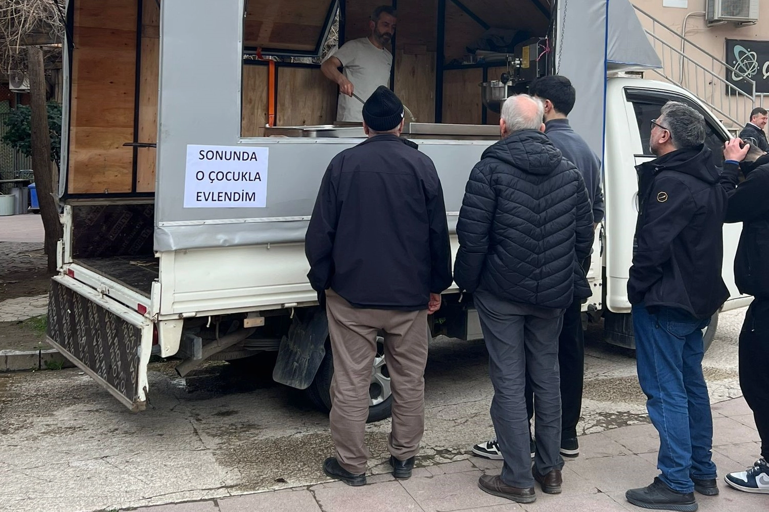 İnegöl Sani Konukoğlu Camii önünde kurulan lokma aracında vatandaşlara ikramda bulunulurken, lokma aracına asılan "Sonunda o çocukla evlendim" yazısı dikkat çekti. Lokma dağıtımı çevredeki vatandaşlar tarafından ilgiyle karşılandı.