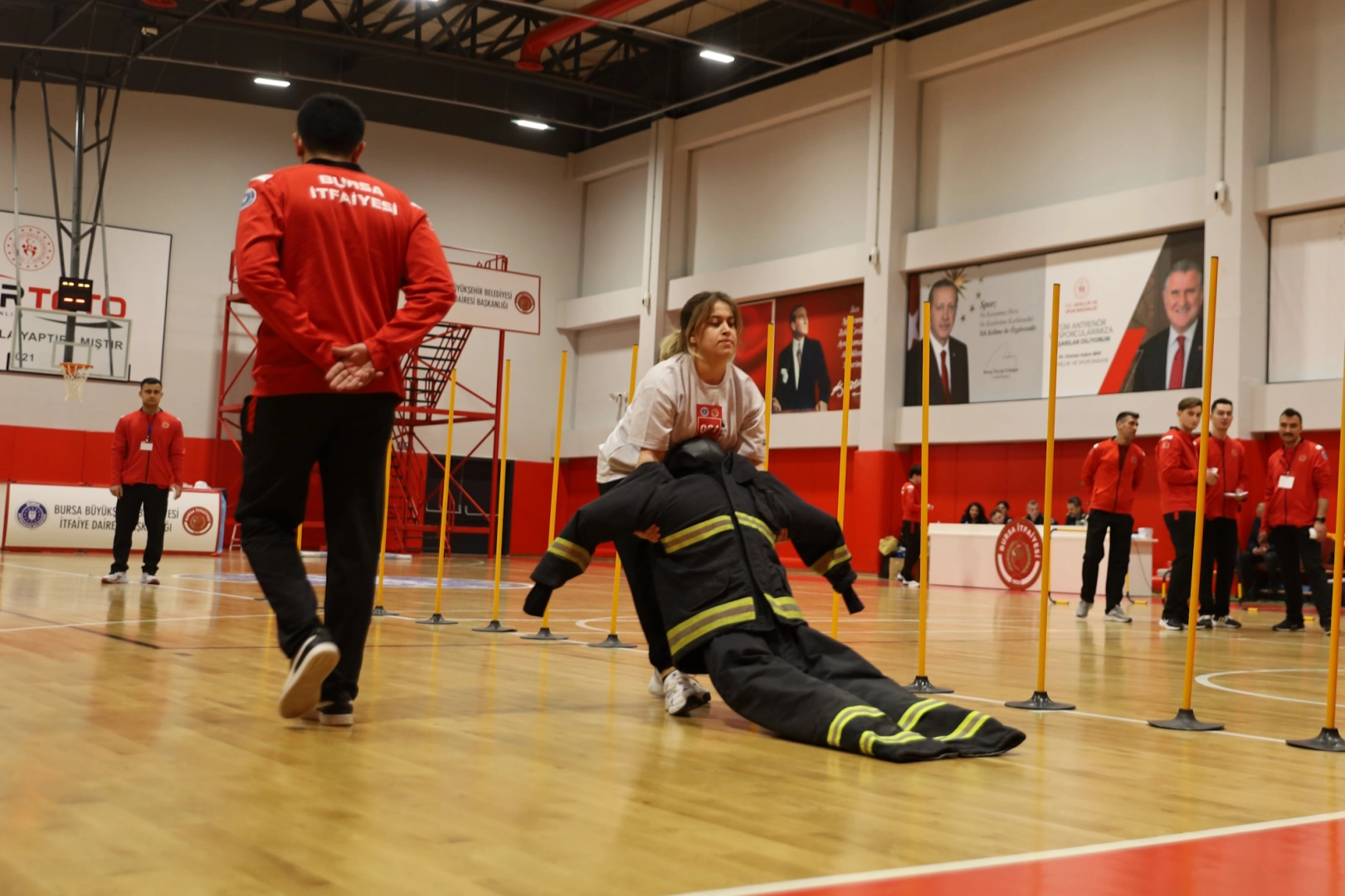 Bursa Büyükşehir Belediyesi’nin 100 itfaiye eri alımı için açtığı sınava giren 450 aday, uzman itfaiyeciler tarafından özel olarak hazırlanan parkurda fiziki dayanıklılık testine tabi tutuldu. Ağırlık taşıma, merdiven çıkma, slalom koşu, şınav, mekik ve araç kullanmadaki hünerlerini gösteren adaylar, ilk 100’e girebilmek için ter döktü.