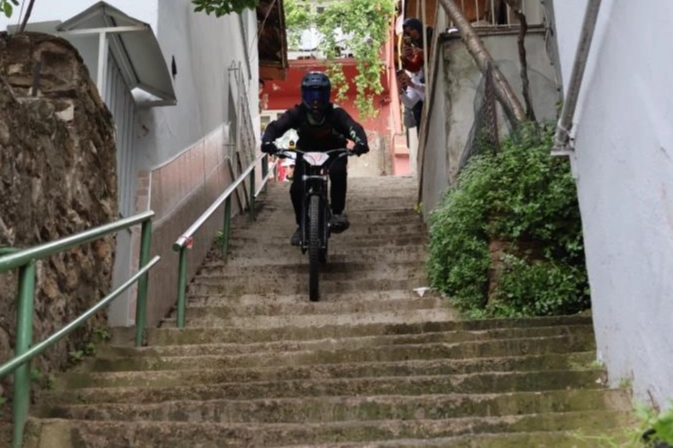 Dar sokakları, dik merdivenleri ve keskin virajları hız kesmeden inen sporcular, izleyenlerin yüreğini ağzına getirdi.