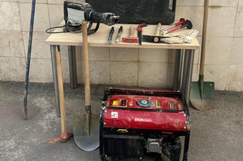 Gözaltına alınan zanlılarla beraber, 1 adet jeneratör, 2 adet kırıcı ve delici matkap ve 13 adet muhtelif kazı malzemeleri ele geçirildi.