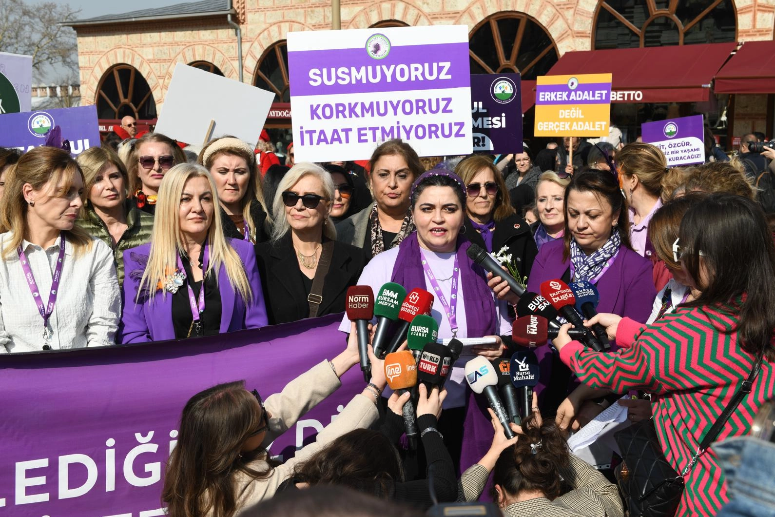 Yürüyüşün ardından Osmangazi Kent Konseyi Kadın Meclisi Başkanı Sevgi Baysal, Bursa Kent Konseyi Kadın Meclisi Başkanı Derya Şimşek Aksakal ve Nilüfer Kent Konseyi Kadın Meclisi Başkanı Nazlı Ünalan, ortak bir basın açıklaması yaptı. Ortak basın açıklamasında şu ifadelere yer verildi: “Bugün 8 Mart Dünya Kadınlar Günü. Birlik ve beraberliğin, dayanışmanın ve kız kardeşliğimizin simge günü. Maruz bırakıldığımız zorluklara rağmen yılmadan bıkmadan bir arada yan yana durmanın haklı gururunu yaşıyoruz. Erkek şiddetine, devlet ve eril medya şiddetine karşı mücadelemizi devam ettireceğiz.