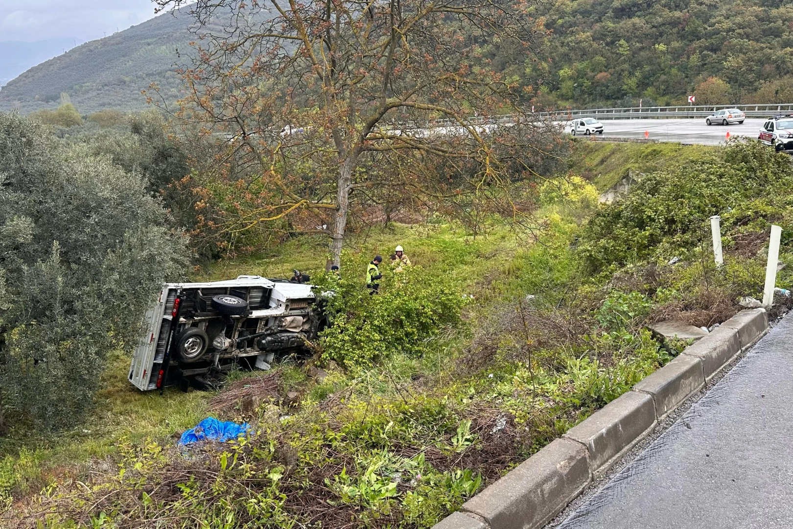 Edinilen bilgilere göre, 54 RH 956 plakalı kamyonet sürücüsü Muhammet K.’nın kontrolünde Yenişehir yönüne seyir halindeyken yağışlı havanın etkisiyle kayganlaşan yolda kontrolden çıktı.