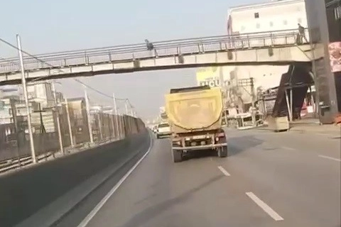 Sürücüsü ve plakası henüz öğrenilemeyen kamyon, bir anda makas atmaya başladı.