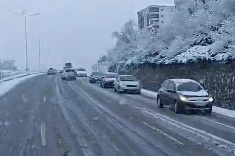 Sürücülerin zor anlar yaşadığı anlar cep telefonu kameralarına yansırken, bir yandan da tuzlama ekiplerinin bölgedeki çalışma yaptığı görüldü.
