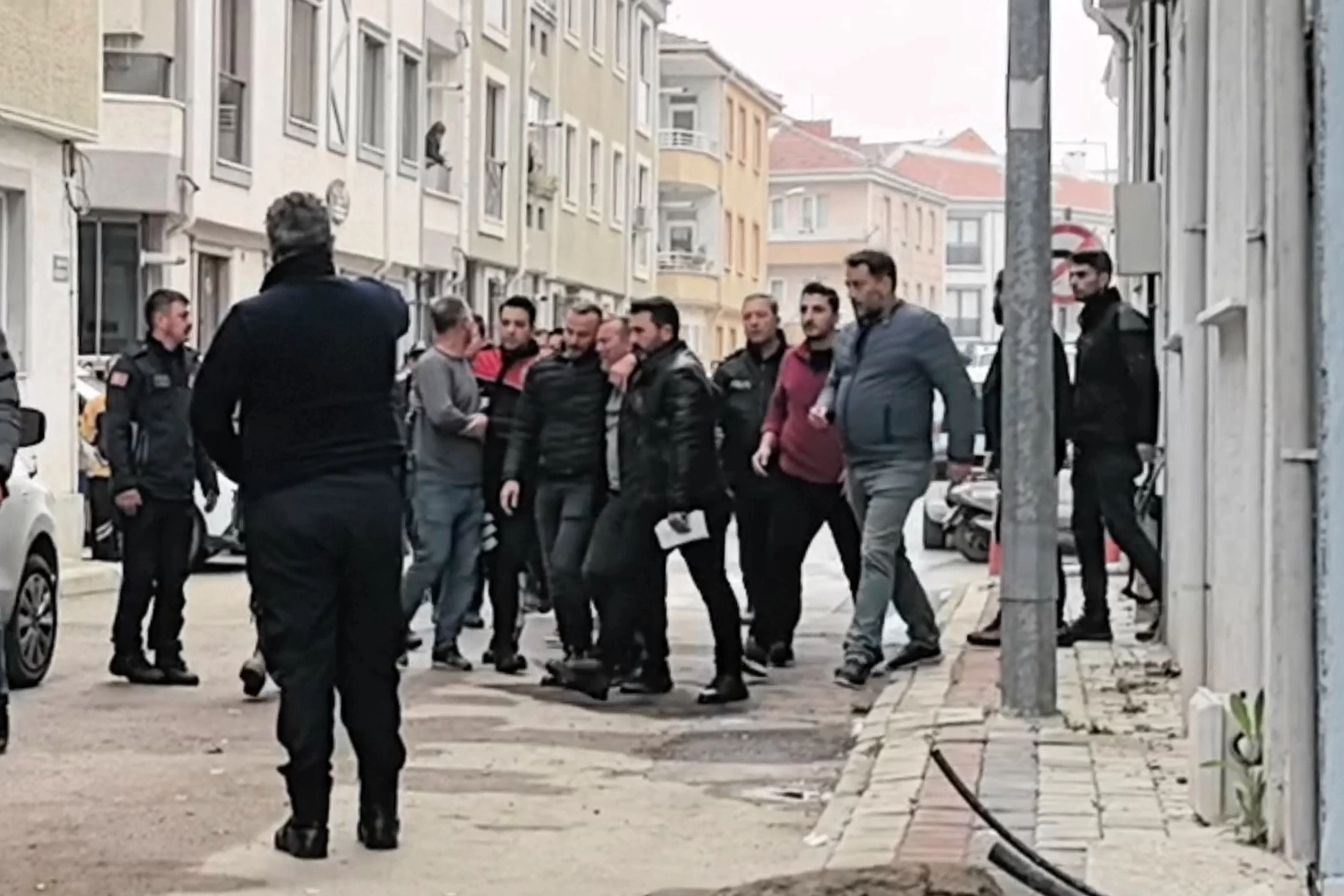 İddiaya göre 40 yaşındaki Hakan B., boşanma aşamasında olduğu iddia edilen 35 yaşındaki eşi Özlem B. ile evde tartışmaya başladı. Tartışmada öfkelenen adam, eşini kemerle boğarak öldürdü. Öfkeli adam eşini öldürdükten sonra intihar etmek için 3 katlı apartmanın çatısına çıktı. Olay yerine polis, 112 ve İtfaiye arama kurtarma ekipleri sevk edildi. İtfaiye ekipleri, apartmanın önüne hava yatağı açtılar.