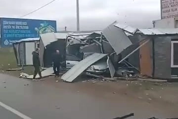 Çarpışmanın şiddetiyle savrulan araçlardan biri yol kenarında bulunan prefabrik yapıya çarparak yapıyı adeta parçalara ayırdı.