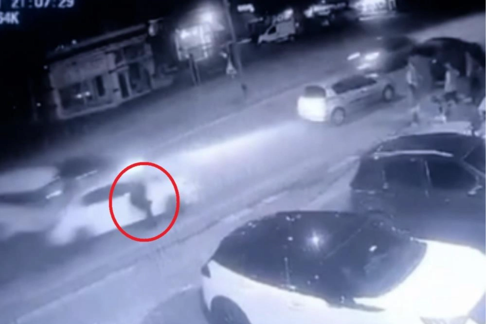 Çevrede bulunan bir işyerinin güvenlik kamerasına yansıyan görüntülerde, hafif ticari park halindeki bir otomobil çarpması ve o sırada çarptığı aracın yanında yürüyen vatandaş kıl payı ile kurtulduğu görüldü.