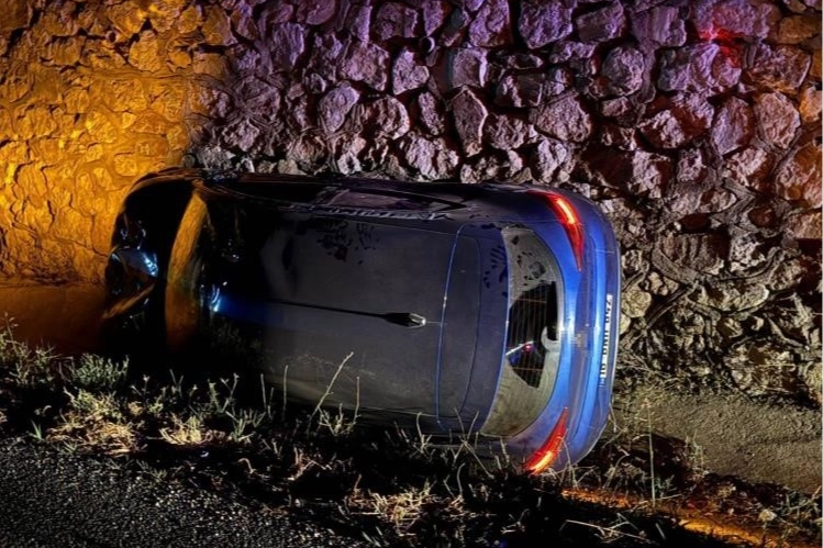 Çarpmanın etkisiyle savrulan otomobil yağmur suyu kanalına düştükten sonra istinat duvarına çarpıp yan durdu, hafif ticari araç ise savrularak bariyerlerin üzerine çıktı.