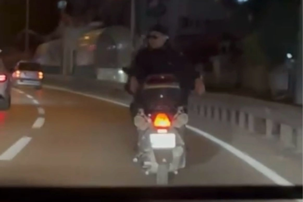 Ters şeritten hızla seyreden motosiklet sürücüsünün tehlikeli anları, saniye saniye amatör kameraya yansıdı.