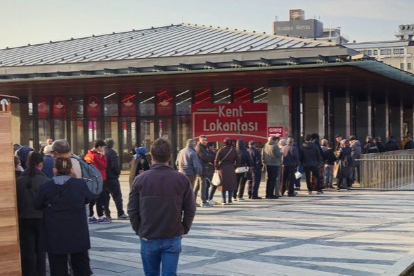 Yapılan paylaşımda, iftar saatinin 19.09 olmasına rağmen vatandaşların 1 saat öncesinden Kent Lokantası önünde kuyruğuna girdiği belirtildi.