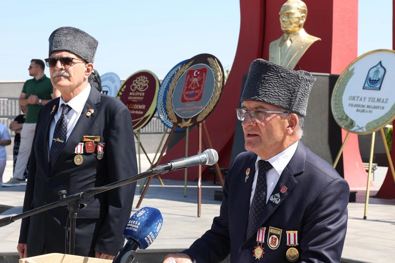 Türkiye Muharip Gaziler Derneği Bursa Şubesi tarafından, 20 Temmuz Kıbrıs Barış Harekâtı’nın 51. yıl dönümü dolayısıyla Mihraplı Şehitlik Anıtı’nda tören düzenlendi.Törene, Başkan Mustafa Bozbey'in yanı sıra Bursa Vali Yardımcısı Kadir Sertel Otçu, önceki dönem Millî Eğitim ve Millî Savunma Bakanı Turhan Tayan, CHP Bursa İl Başkanı Nihat Yeşiltaş, Yıldırım Belediye Başkanı Oktay Yılmaz, Aile ve Sosyal Politikalar Bursa İl Müdürü Faruk Uysal, Işıklar Askerî Veteriner Okulu ve Eğitim Merkezi Komutanları ile Türkiye Muharip Gaziler Derneği Bursa Şube Başkanı Adem Erdem katıldı.