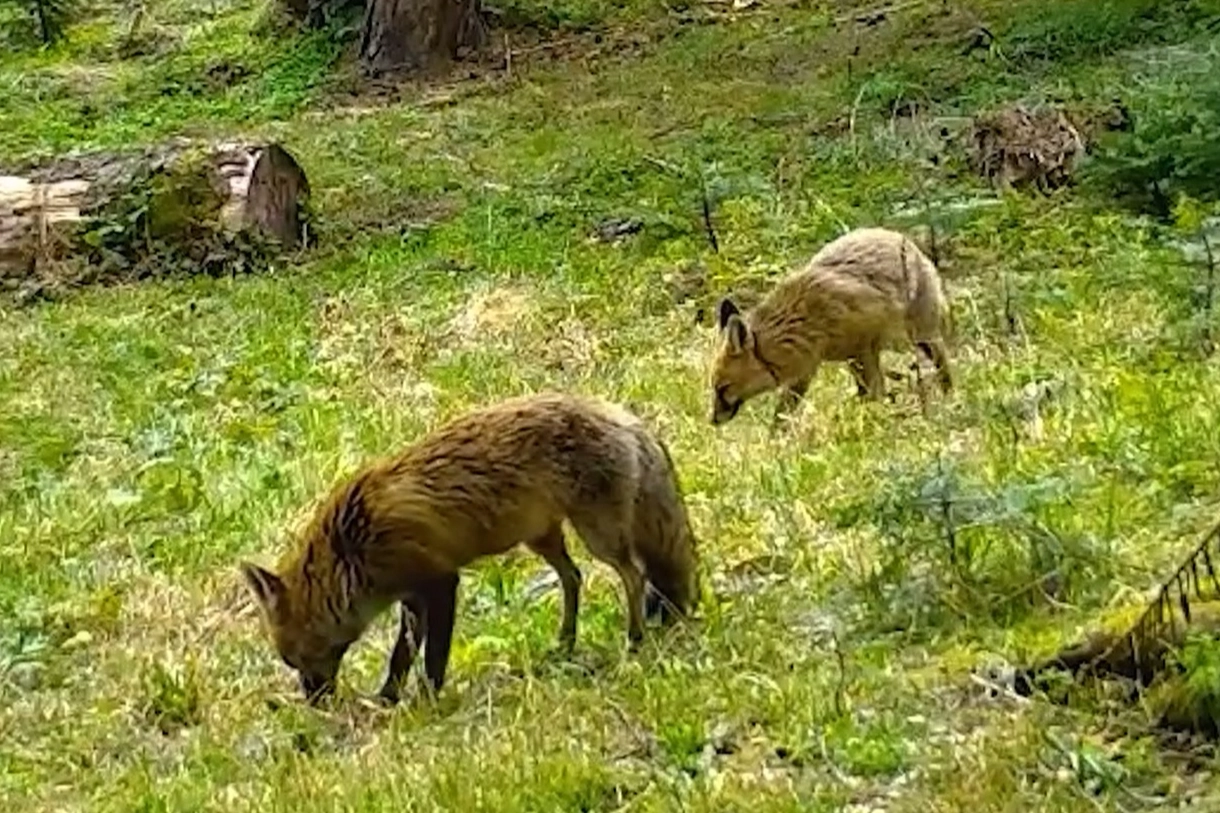 Ormanda yiyecek arayan kızıl tilki ile yavrusu, Doğa Koruma ve Milli Parklar 2’nci Bölge Müdürlüğü’nün sosyal medya hesabında, "Ormanın yeşil örtüsü altında bir anne ve yavrusu… Sessizce ama dikkatle, doğanın sunduklarını arıyorlar. Bilimsel adıyla Vulpes vulpes, kızıl tilki, Türkiye’nin hemen her bölgesinde rastlanan en yaygın yabanıl etçillerden biridir. Bu görüntüde ise anne ve yavru birlikte, ormanda yaşamın sürekliliğini temsil ediyor" ifadeleriyle paylaşıldı.