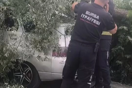 Olay, saat 16.00 sıralarında İnegöl'ün kırsal Alibeyköy Mahallesi'nde bulunan hayvan pazarı mevkiinde meydana geldi. Sürücü, 16 J 9829 plakalı otomobilini yolun kenarına park edip kurbanlık hayvan bakmak için hayvan pazarına girdi. O sırada lodosun etkisiyle bir ağaç kökünden sökülerek, park halindeki aracın üzerine devrildi. Ağacın altında kalan aracı gören vatandaşlar durumu itfaiyeye haber verdi. Olay yerine gelen itfaiye ekipleri, motorlu testere ile ağacı parçalayıp aracı çıkardılar. Araçta maddi hasar meydana geldi.