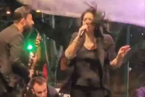 Lodos şiddeti ile birlikte konser alanının arkasındaki pankartı yırtarken sanatçı ve vatandaşlar ise sakinliğini korudu.
