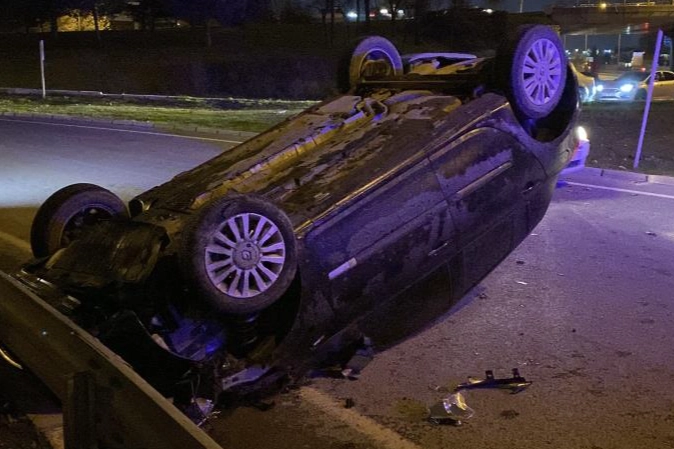 Ters dönen araçtaki sürücü kazayı hafif sıyrıklarla atlattı.