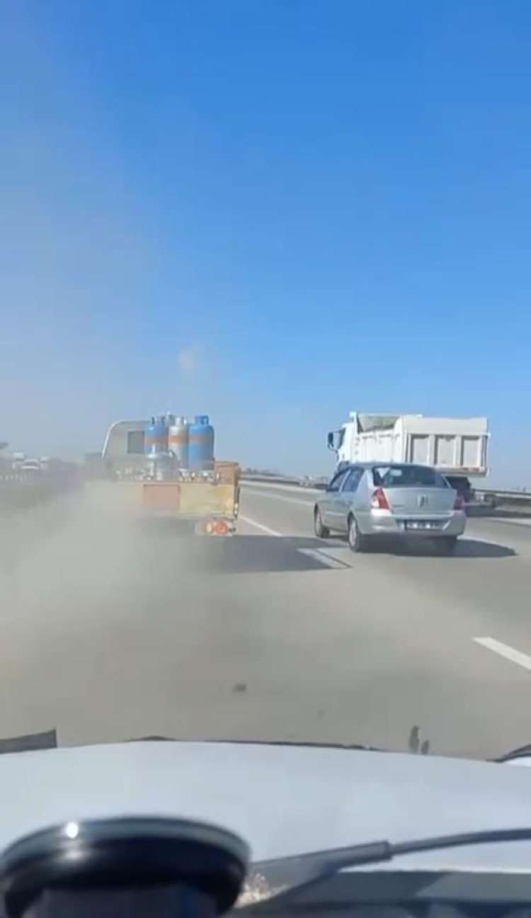 Sürücüsü henüz öğrenilemeyen 16 AGZ 234 plakalı tüp kamyonunun seyir halindeyken bir anda lastiği patladı.