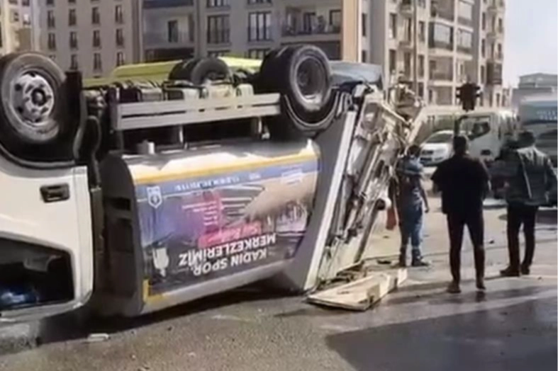 Refüje çarpan tonlarca ağırlığındaki araç takla atarak ters döndü. Gürültüyü duyan çevredeki vatandaşlar büyük panik yaşarken, kazayı görenler sürücüyü araçtan çıkarmak için seferber oldu.