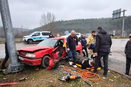 Sürücülerden M.A.S. itfaiye ekipleri tarafından sıkıştığı araçtan çıkarıldı.