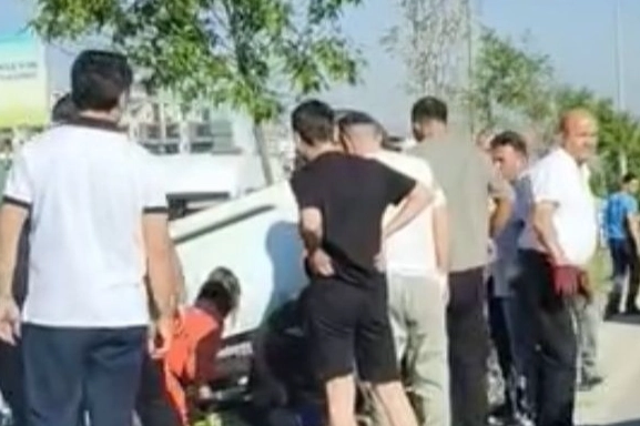 Otomobil önce yol kenarındaki demir bariyerleri aştı, ardından karşı şeride geçerek takla attı.