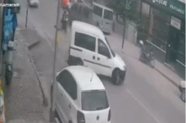 Kaza anı, çevredeki bir iş yerinin güvenlik kamerası tarafından saniye saniye kaydedildi. Görüntülerde motosikletin yola çıkan araca çarpması ve sürücünün savrulma anı net şekilde görülüyor.