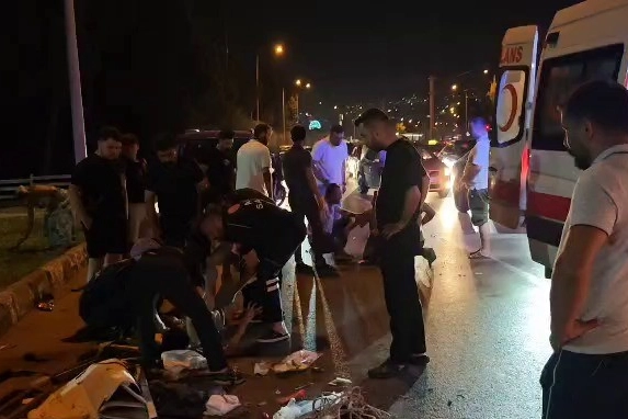 Çarpmanın etkisiyle savrulan motosiklet üzerindeki 3 kişi yaralandı. İhbar üzerine olay yerine polis ve sağlık ekipleri sevk edildi.