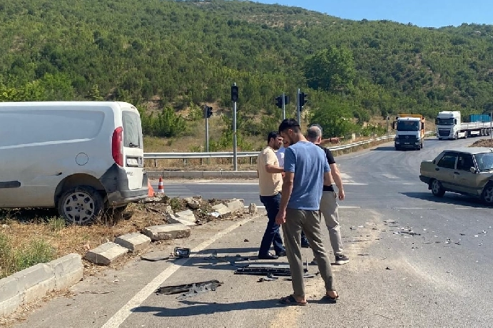 Çarpmanın etkisiyle hafif ticari araç refüje çıktı.