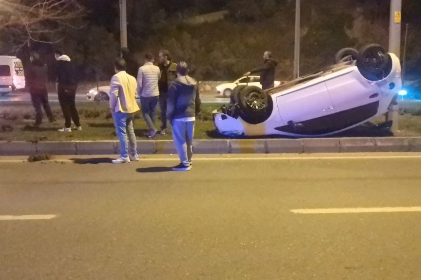 İ.F.T, (26) yönetimindeki 16 JLS 90 plakalı otomobil, Güzelyalı Kavşağı'nda sürücüsünün direksiyon hakimiyetini kaybetmesi sonucu refüje devrildi.
