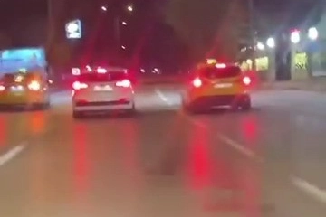 Öte yandan, yaşanan kovalamacada taksiden inen bir kişinin ise, korsan taşımacılık iddiası ile kovaladıkları şahsın aracına tekme atmaya çalışması kameraya anbean yansıdı.