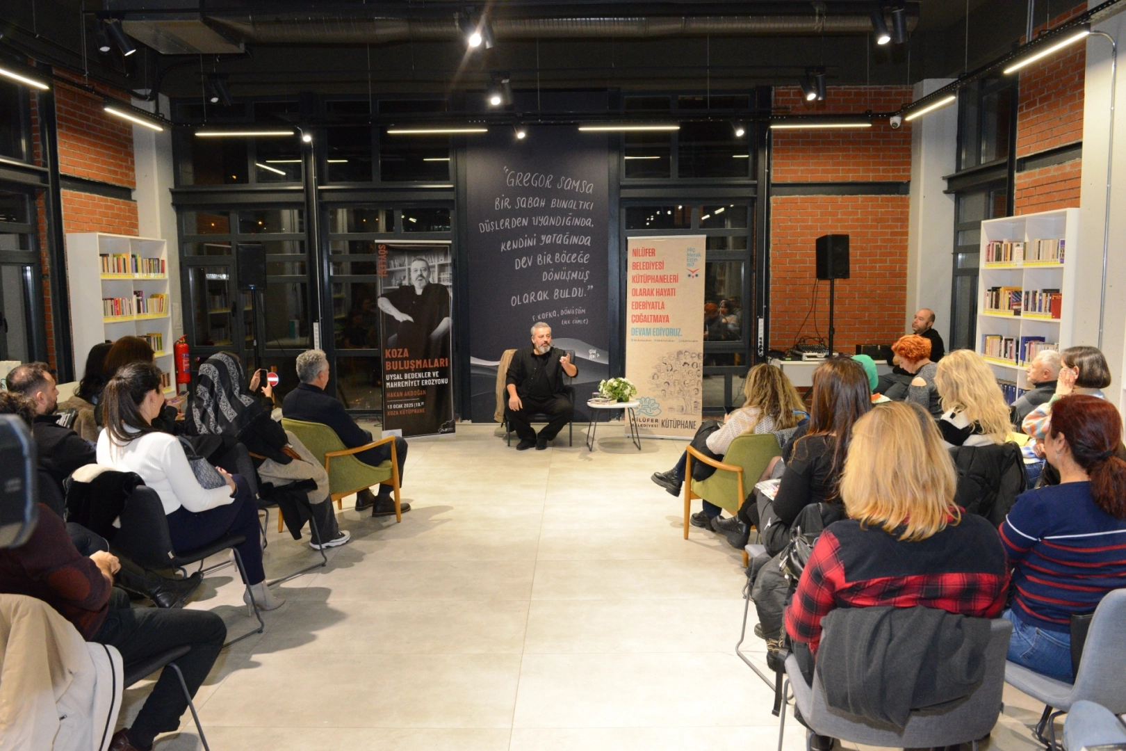 Nilüfer Belediyesi, 2025 yılının ilk Koza Buluşmaları etkinliğinde yazar Hakan Akdoğan’ı ağırladı. Edebiyatseverlerin yoğun ilgi gösterdiği ve Koza Kütüphane’de düzenlenen söyleşide; “Uysal Bedenler ve Mahremiyet Erozyonu” konusu ele alındı. Yazar Hakan Akdoğan, modern dünyada bireylerin iktidar mekanizmaları tarafından nasıl şekillendirildiğini ve sosyal medyanın gözetleme kültürüne etkilerini anlattı.