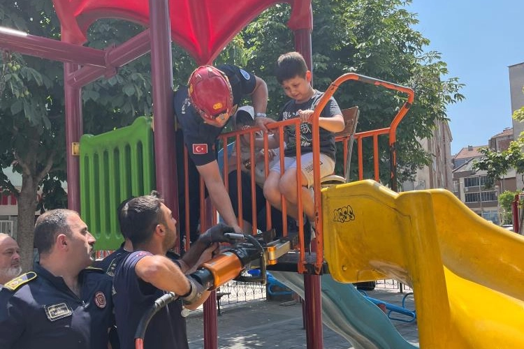 Oyun oynarken kaydırağın yan kısmındaki korkuluklara dizleri sıkışan çocuğun çığlıklarına çevredekiler koştu.