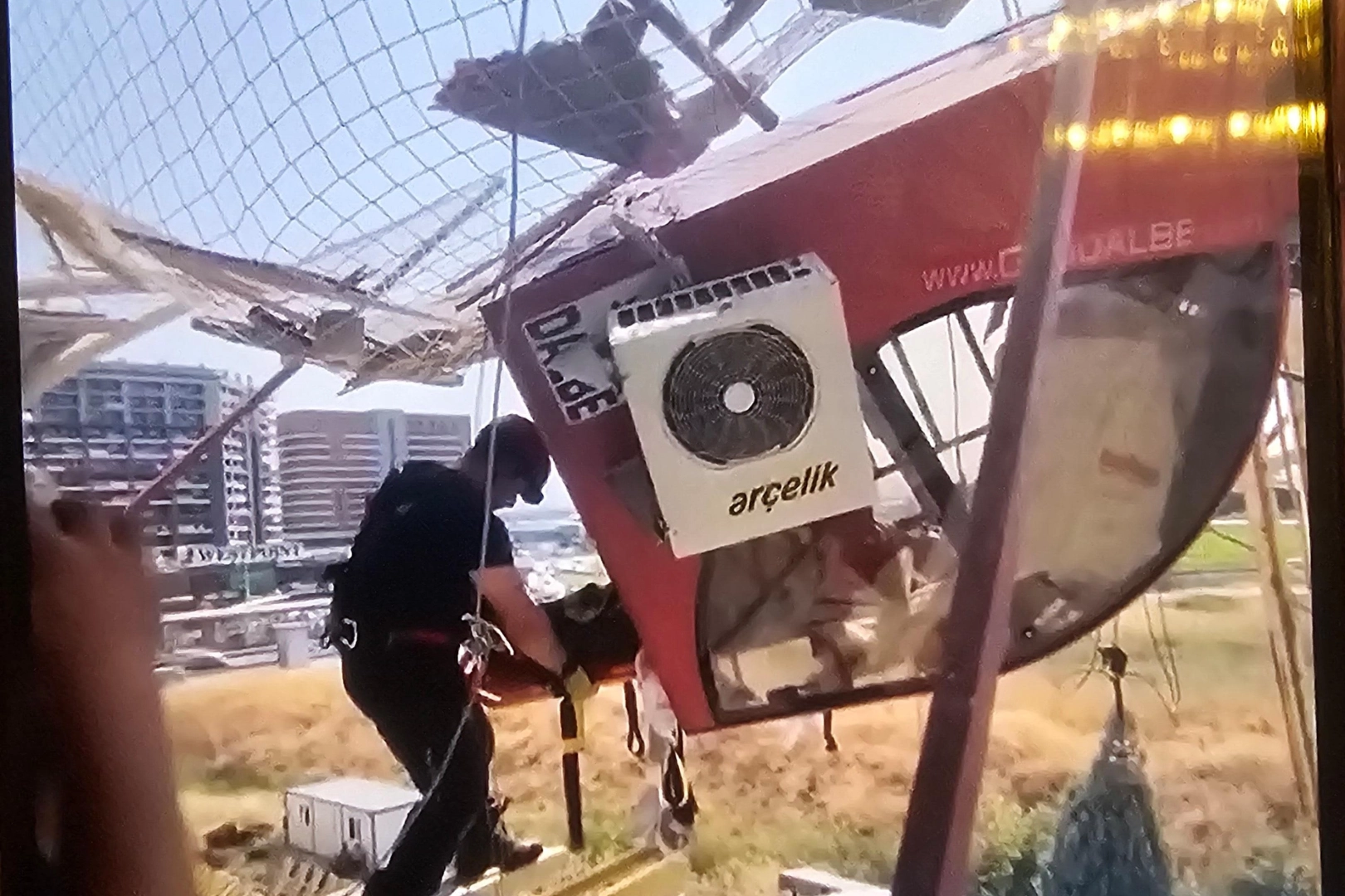 İhbar üzerine bölgeye itfaiye, sağlık ve polis ekipleri sevk edildi. İtfaiye ekipleri, kabin içinde sıkışan operatör K.M.'yi yaptıkları kurtarma operasyonu ile bulunduğu yerden çıkartarak sağlık ekiplerine teslim etti. Operatörün sağlık durumunun iyi olduğu öğrenildi.