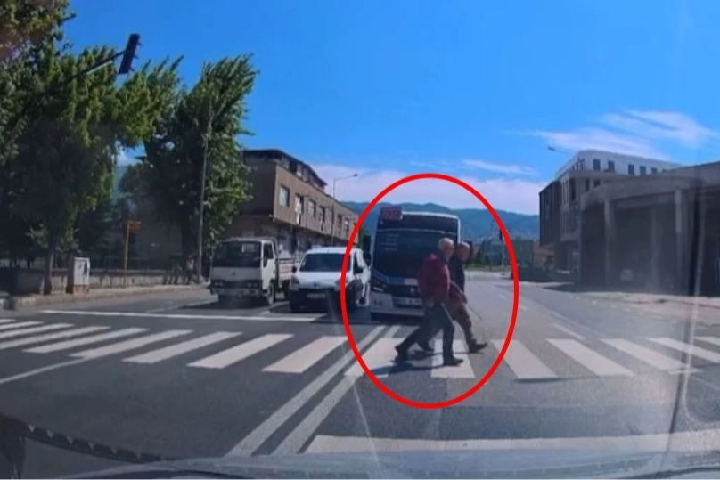 Bu sırada yaya geçidinden geçen 2 kişi ise üzerlerine gelen minibüsü görünce, koşarak ilerledi.